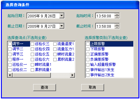 (3)報(bào)警:變頻器、溫度、濕度、風(fēng)壓發(fā)生異常報(bào)警時(shí),相應(yīng)的顯示會發(fā)生閃爍及聲音報(bào)警點(diǎn)擊消除;同時(shí)選擇各類報(bào)警并記錄報(bào)表;提供打印功能。