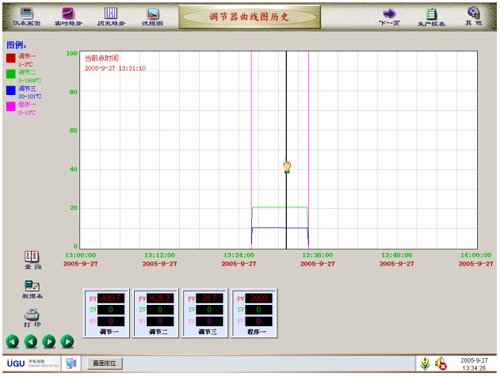(5)三曲線:歷史曲線提供PV、SV、MV、三曲線運(yùn)行圖表提供打印功能。