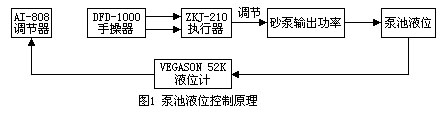 泵池液位自動控制功能的實現(xiàn),是由VEGASON52K液位計將檢測到的液位信號,轉(zhuǎn)換成4-40mA的電流輸出信號,經(jīng)電阻進(jìn)到調(diào)節(jié)器,調(diào)節(jié)器作數(shù)據(jù)分析處理后,根據(jù)控制功能參數(shù)的設(shè)置要求,驅(qū)動中間繼電器1ZJ或者2ZJ,控制ZKJ-210執(zhí)行機構(gòu)的正、后轉(zhuǎn),調(diào)節(jié)砂泵液力耦合器的油量,從而達(dá)到增大或減少砂泵輸出功率,穩(wěn)定泵池液面的目的。